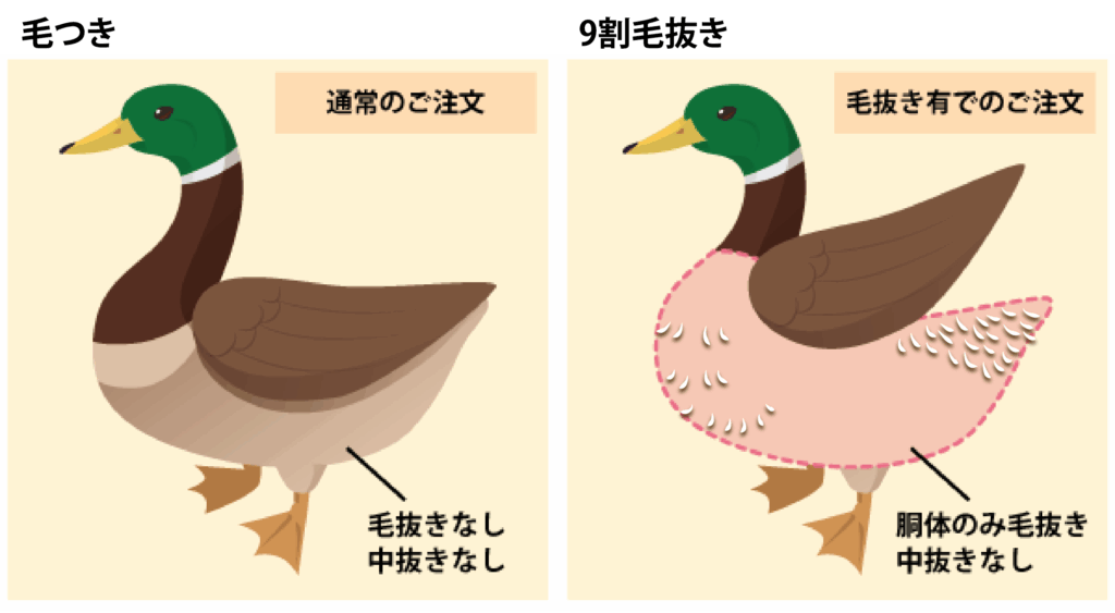 若干の毛抜き仕上げ作業は必要ですが、捕獲からの作業工程が短いため新鮮な状態でのお届けが可能になります!